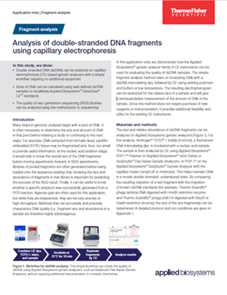 From this new application note for analysis of dsDNA fragments, you will find out simple workflow to check the quality of dsDNA using genetic analyzers.